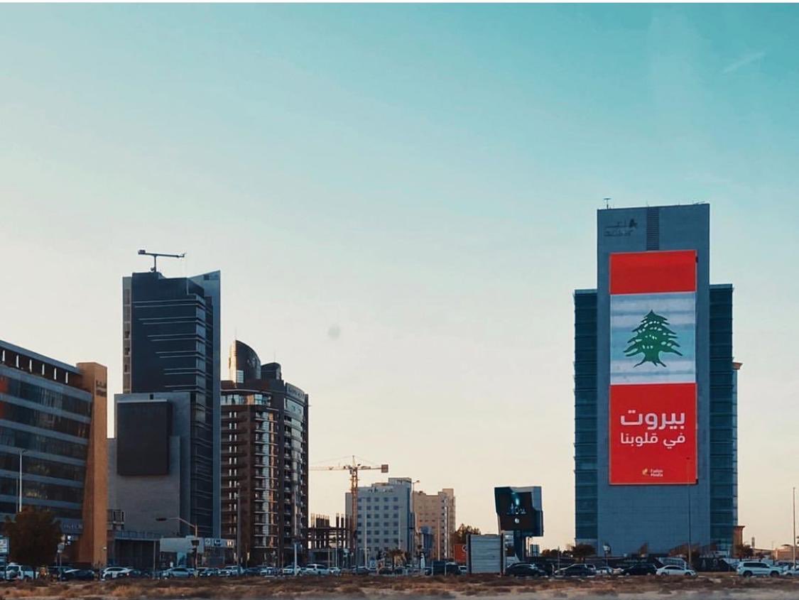 برج طريق الملك في جدة يتزين بعبارة بيروت في قلوبنا. مساحة المباني الخاصة بالبرج. برج طريق الملك بجدة التقطت يوم امس هذه الصورة لاكبر شاشة led في العالم ببرج طريق الملك بجدة وكما تلاحظون الشاشة بحجمها ومتحركة وتعرض صورة الملك عبدالله حفظه الله وصور متفرقة. جنوبا شارع فرعي 3.