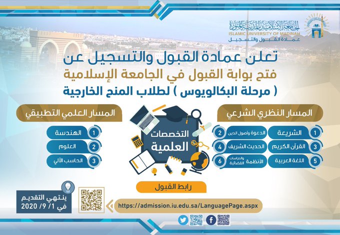 الجامعة الإسلامية On Twitter تعلـن الجامعة الإسلامية عن فتـح بـاب القبول في 4 تخصصات ماجستير في محافظة ينبع للتفاصيل