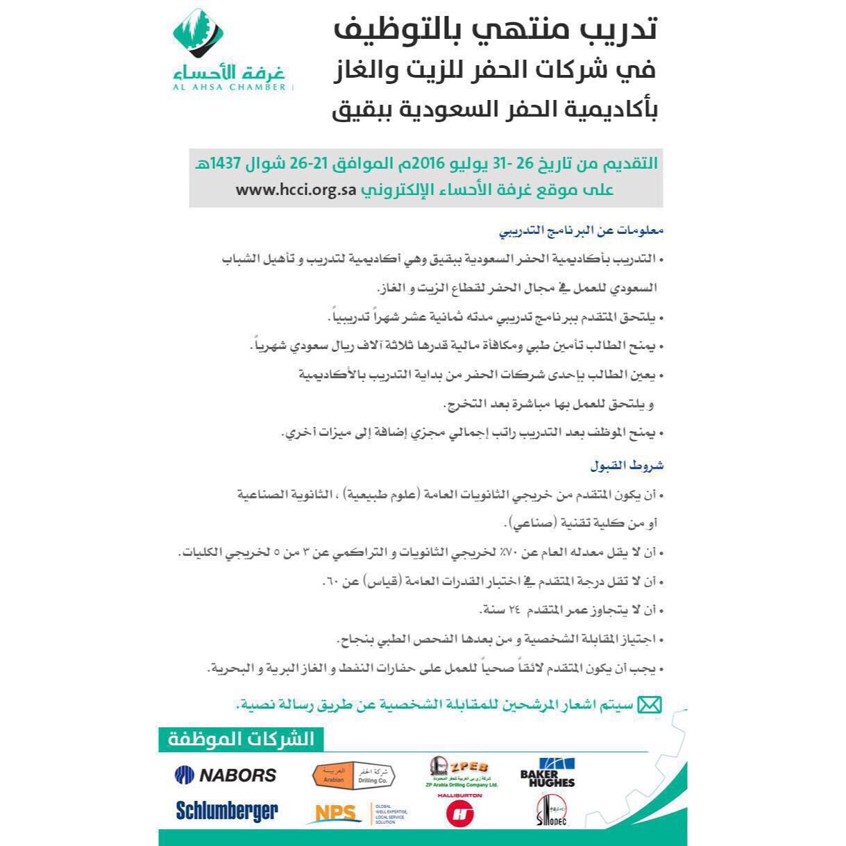 بقيق نيوز Ar Twitter تدريب منتهي بالتوظيف في شركة الحفر للزيت والغاز بأكاديمية الحفر السعودية بمحافظة بقيق