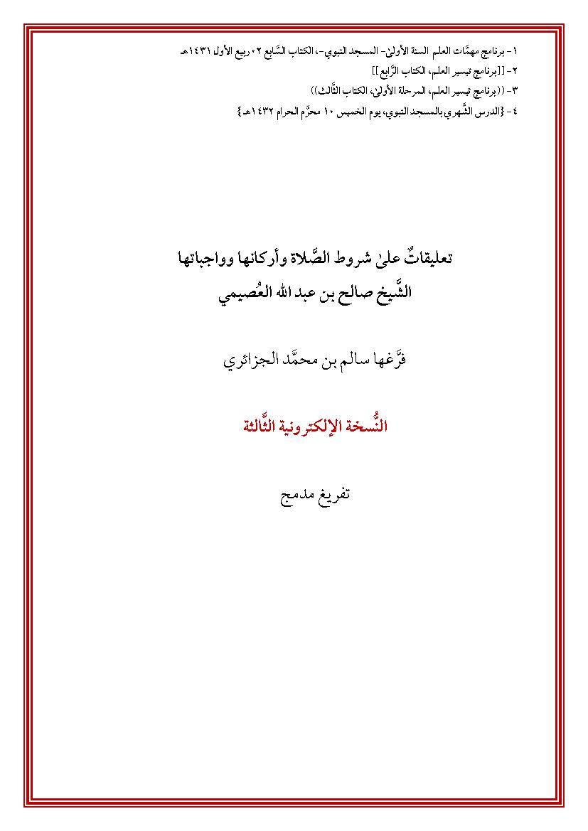 تفريغ شرح شروط الصلاة وأركانها وواجباتها النسخة الثالثة