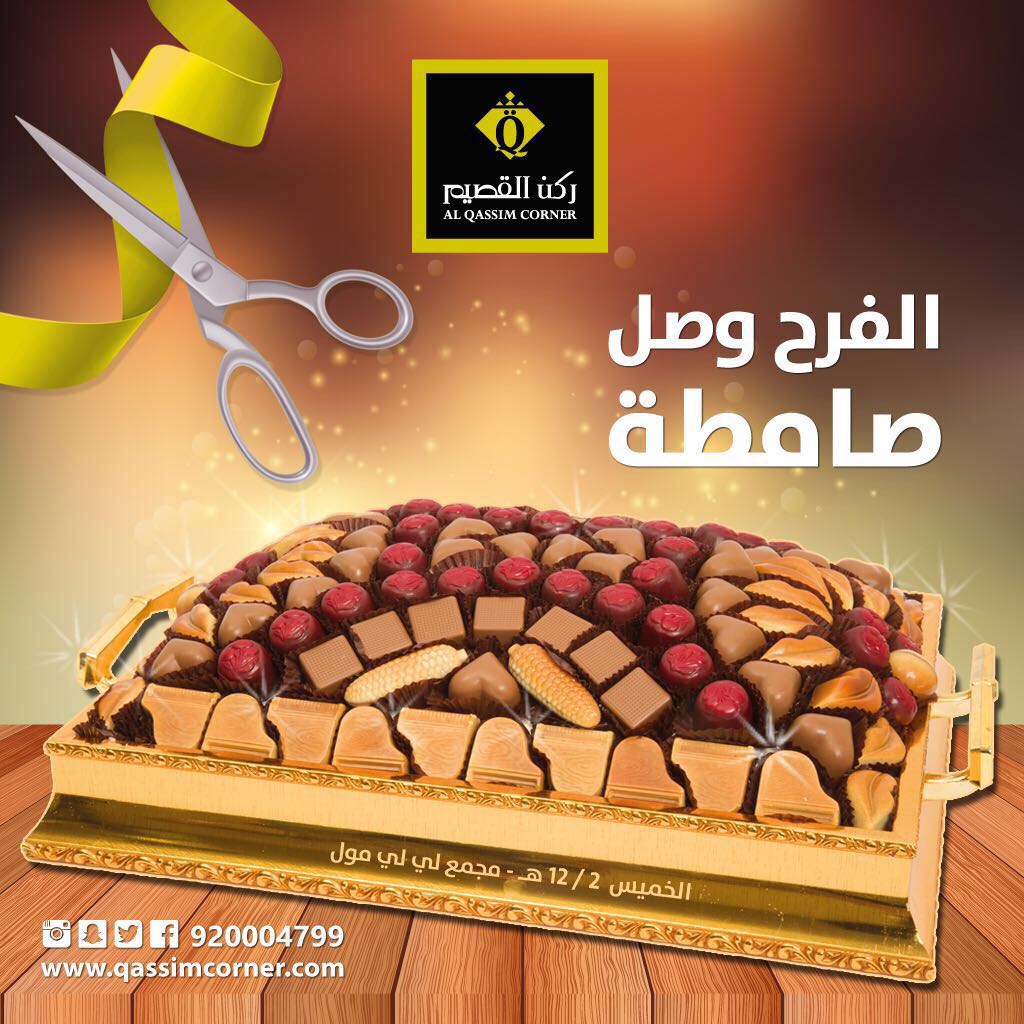 حلويات ركن القصيم בטוויטר الفرح وصل صامطة غدا الخميس أفتتاح فرعنا في صامطة الشارع العام في مجمع لي لي مول يسعدنا حضوركم ركن القصيم طعم الفرح Https T Co 0q4wfyckla